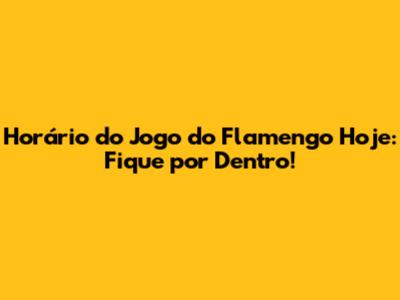 Horário Do Jogo Do Flamengo Hoje